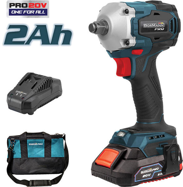 BORMANN Pro ÜTVECSAVAROZÓ KÉSZLET, SZÉNKEFE NÉLKÜLI MOTOR, 20V, Li-Ion, 400ΝΜ, 0-1800/0-2200/0-2600rpm + AKKU ÉS TÖLTŐ (BBP9230) (BBP9230)